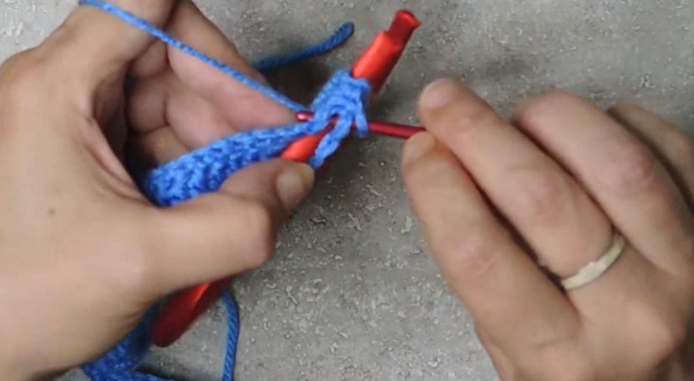 - In the very first stitch, work: