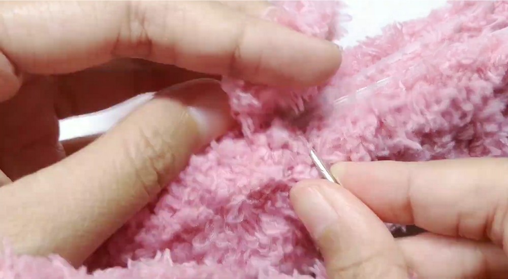 - Use the tapestry needle and leftover towel yarn to join the sections together.