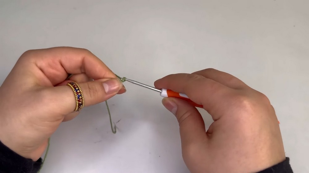 - Create a Slip Knot and begin with your desired number of chains (e.g., 16 chains for a medium-sized bow).
