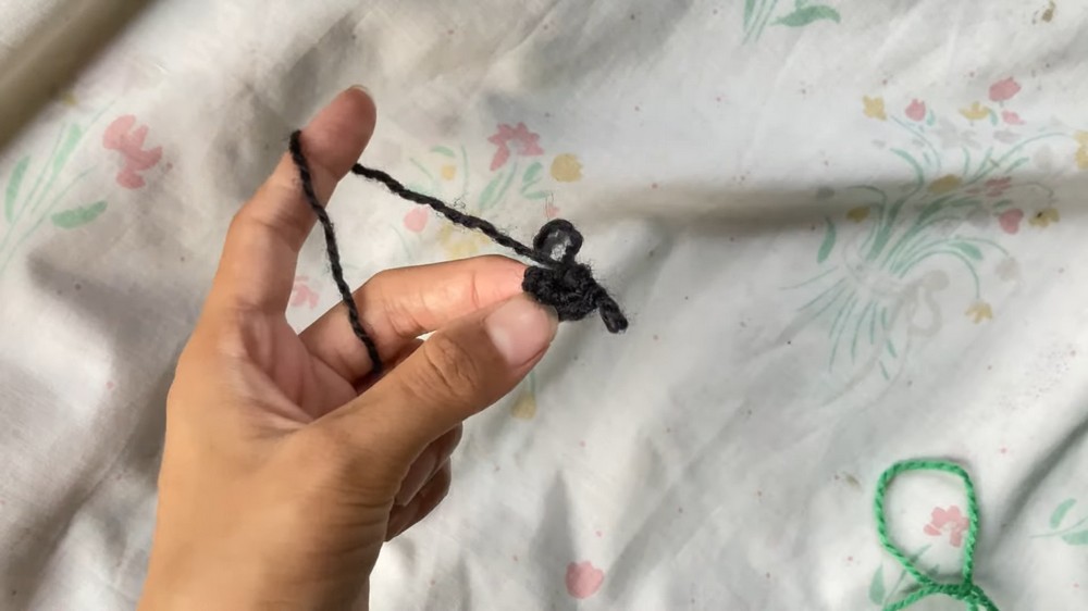 - Pull the tail tightly and make a slip stitch in the first chain. Bright-colored yarn can be used for visibility during stitching.