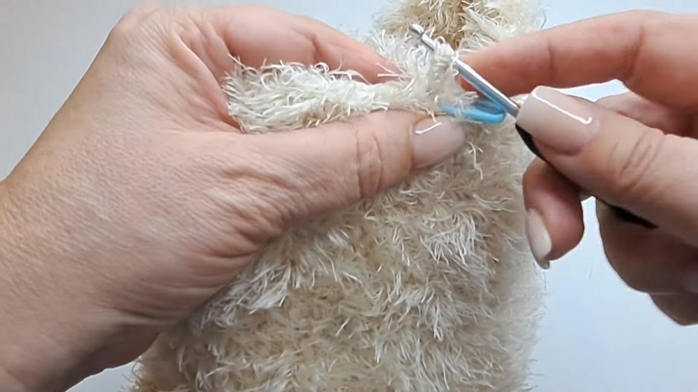 - Complete the round by crocheting up to the stitch marker. Cut the thread and pull it out to finish this section.