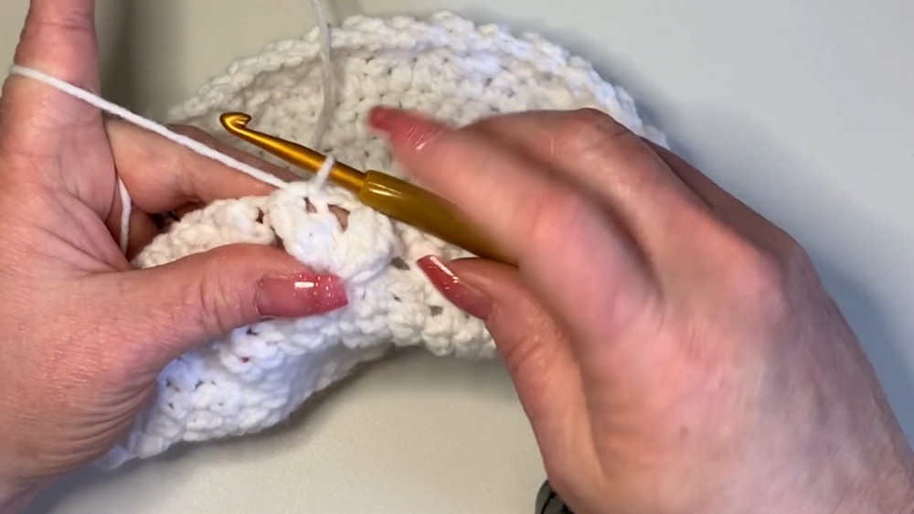 - Place 1 double crochet in each stitch around to create the beanie shape.