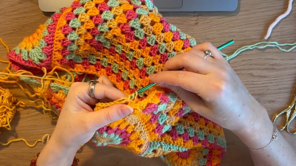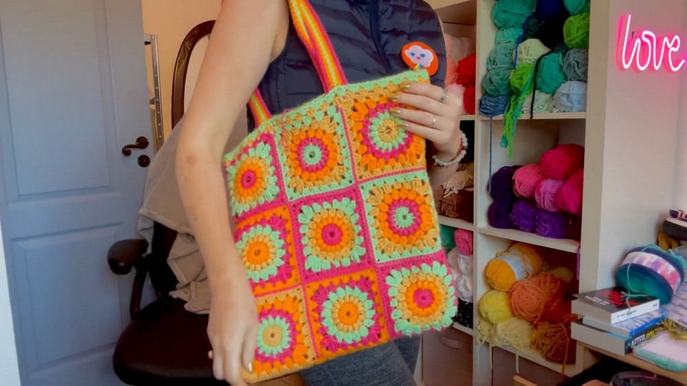 In this pattern, Creator walks through the process of designing and assembling a stylish tote bag using Starburst Granny Square pattern. This project offers a creative way to make use of vibrant granny squares while crocheting a functional accessory.