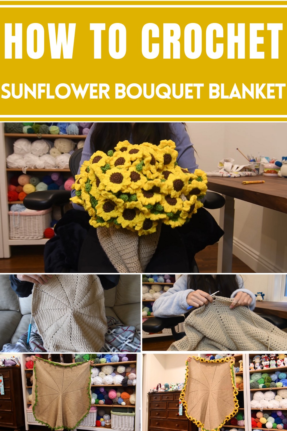 Blooming Beauty Crochet Sunflower Bouquet Blanket Pattern