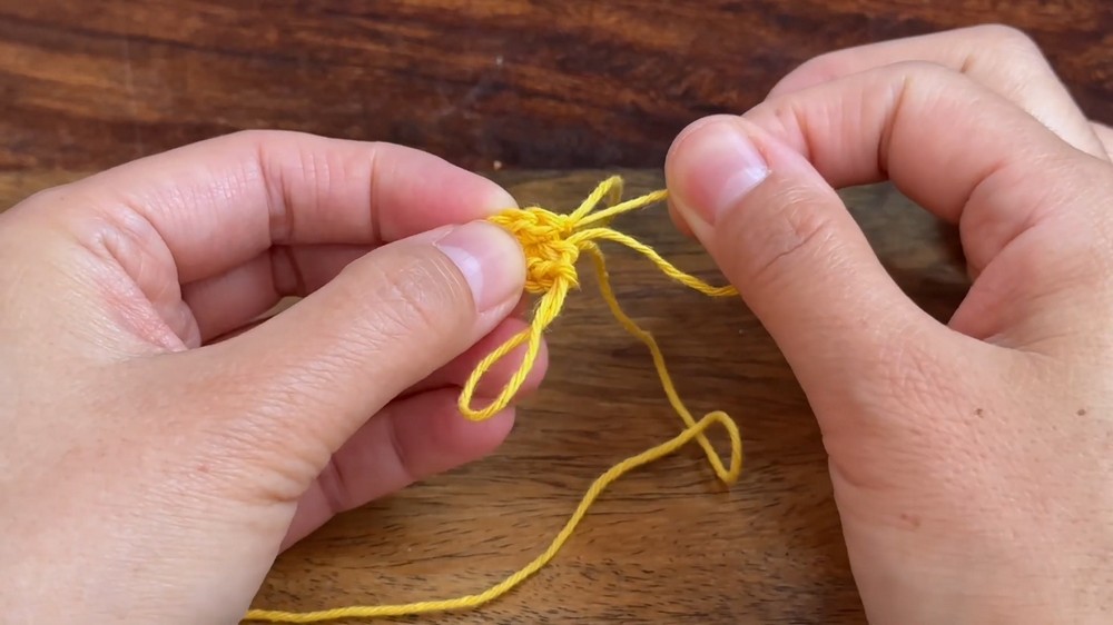 - Fully close the circle by pulling the tail and joining with a slip stitch into the first single crochet.