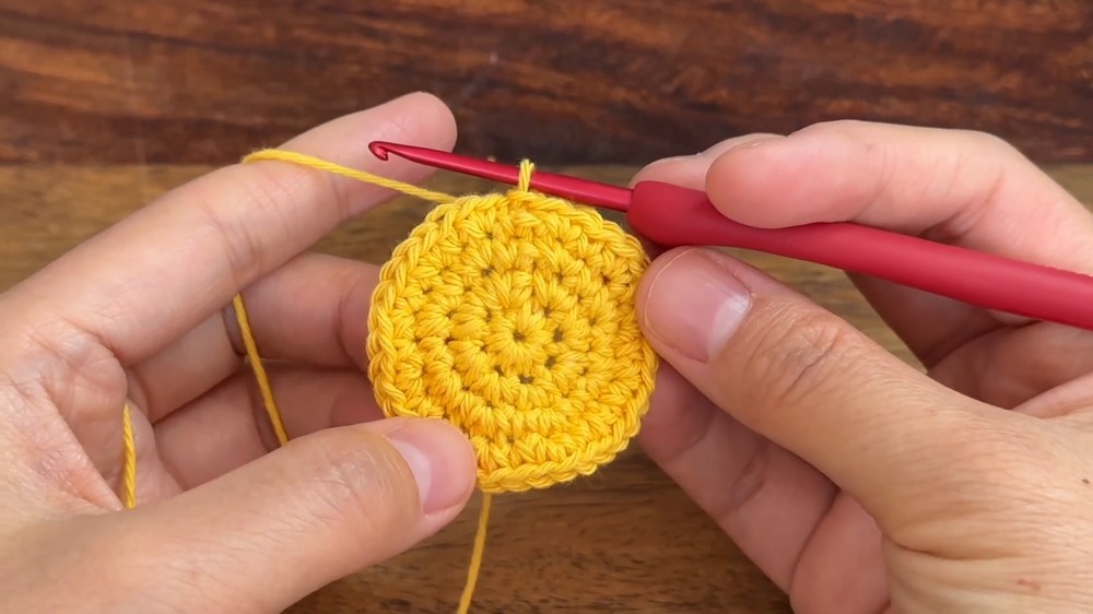 - Repeat until you have 24 stitches. Join with a slip stitch.