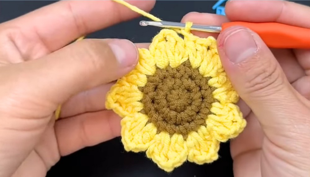 - Work 10 single crochets around the flower to create even spacing.