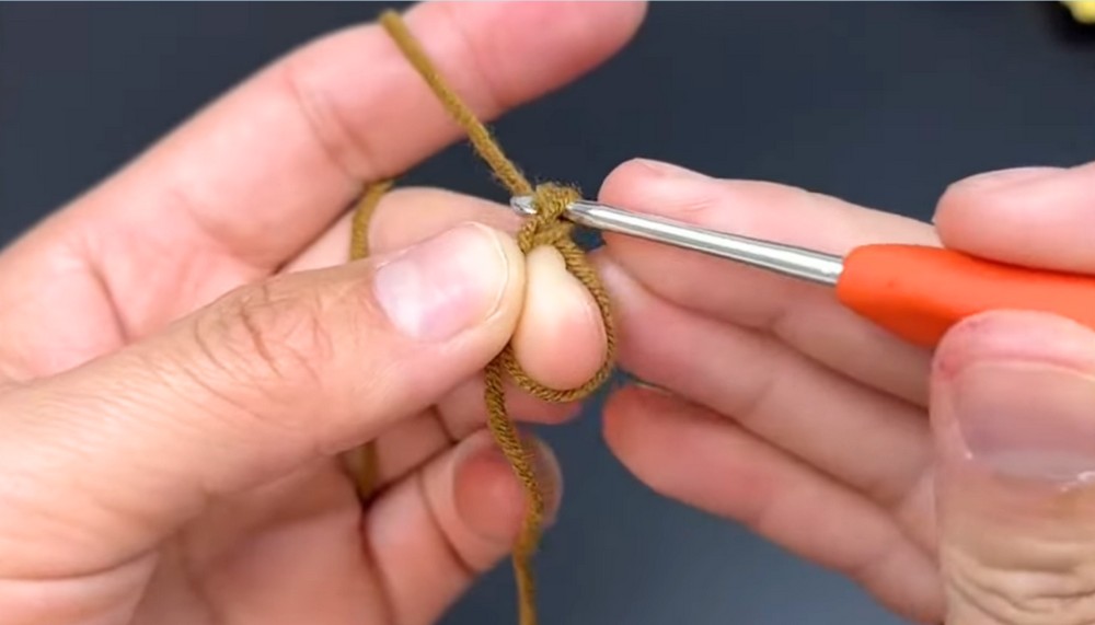 - Take light brown yarn and create a ring.